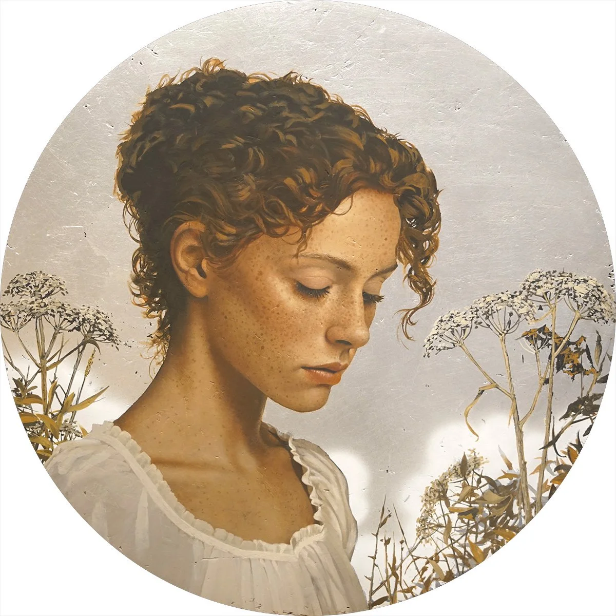 Oil or acrylic portraits on gold leaf or with gold or silver leaf background/detailing