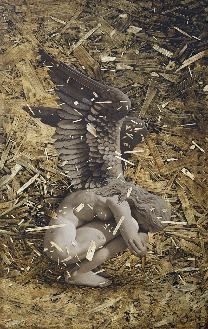For over 10 years I have increasingly incorporated gold leaf in my artwork as I believe it adds a unique, radiant quality to a surface. Reflected ambient light gives an atmospheric warmth that somehow solidifies its connection to its environment; particularly at certain times of day or under candlelight, which adds a new dimension to artwork, figures which are detailed during the day can become near silhouettes at night.