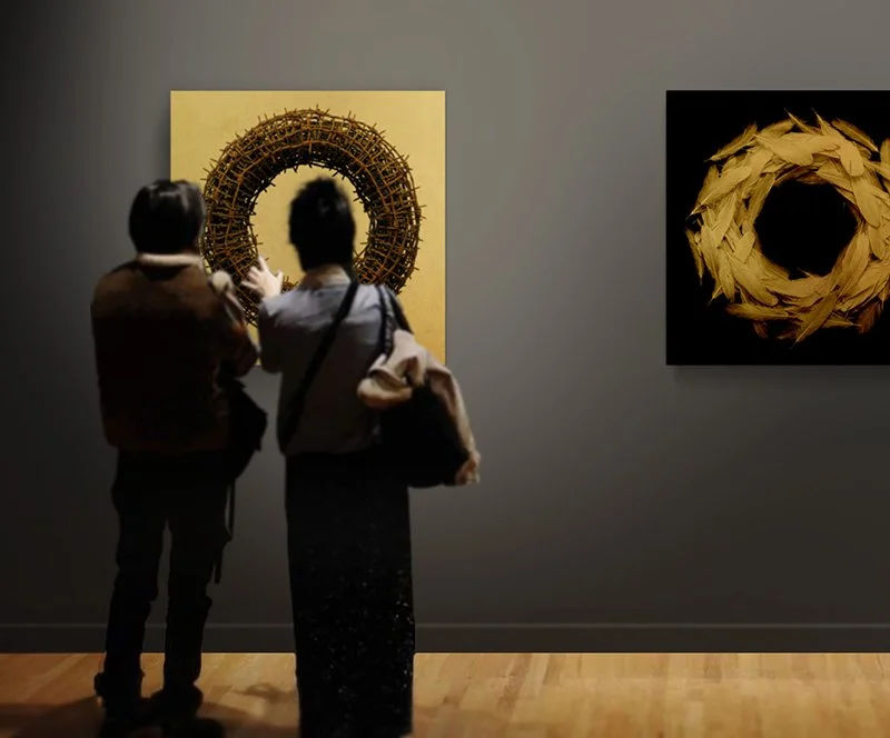 Handcrafted mixed-media artworks on gold leaf: available in 24” and 30”, limited to only 5 originals.